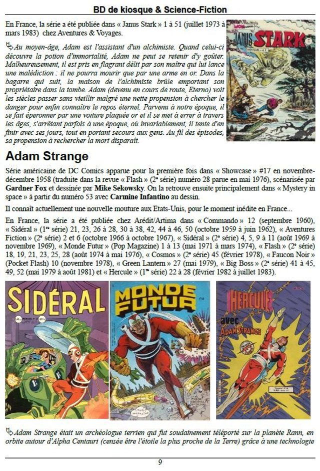 - 315 articles classés par ordre alphabétique de "10 000 fléaux de Dort" à "Zenga" en passant par Wampus, Kronos, Jet Logan, Archie le robot, Météor, Sidéral, Kamandi, Futura, Eclipso, Dan Dair, Aventures de demain, l'Ethernaute, Astrotomic, Adam Eterno, Flash Gordon, Super Boy, les Robinsons de la terre, les Pionniers de l'Espérance, Aventures Fiction etc.