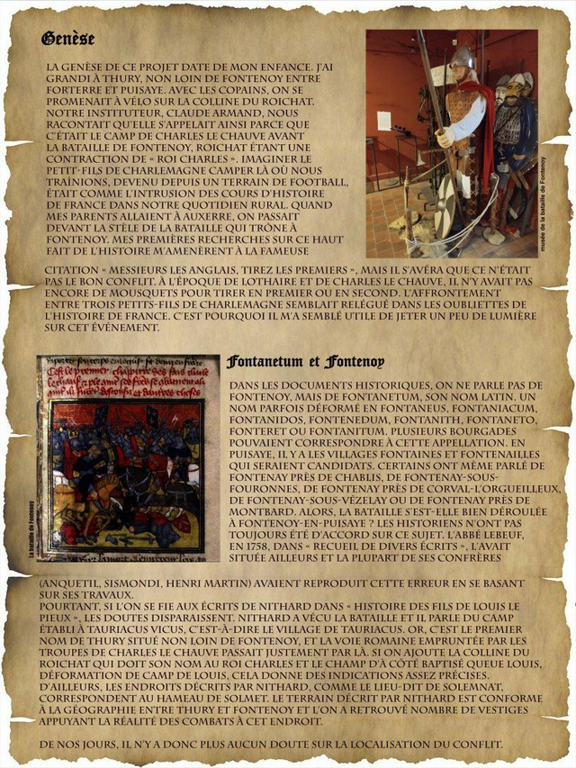À la mort de Charlemagne, Louis le Pieux hérite de l’Empire de son père. Hélas, son manque d’autorité et une seconde épouse désireuse de favoriser son fils vont provoquer des remous aboutissant à des querelles entre frères. Lothaire, l’aîné, se voyait déjà empereur, mais le jeune Charles le Chauve ne l’entendait pas de cette oreille. Il s’allie avec Louis le Germanique, le cadet de la fratrie, et ça dégénère en conflit ouvert. La bataille aura lieu à Fontenoy, dans la Puisaye rurale et pauvre au grand dam des habitants du cru. Revivez en images cette saga aux multiples rebondissements.