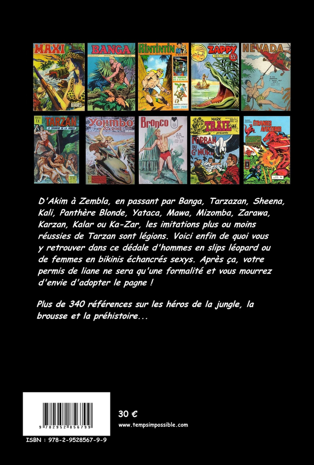 160 pages (format 21x30 cm), entièrement en couleurs. 350 références sur les héros de jungle et de préhistoire (revues, personnages). Papier glacé. Quadrichromie.